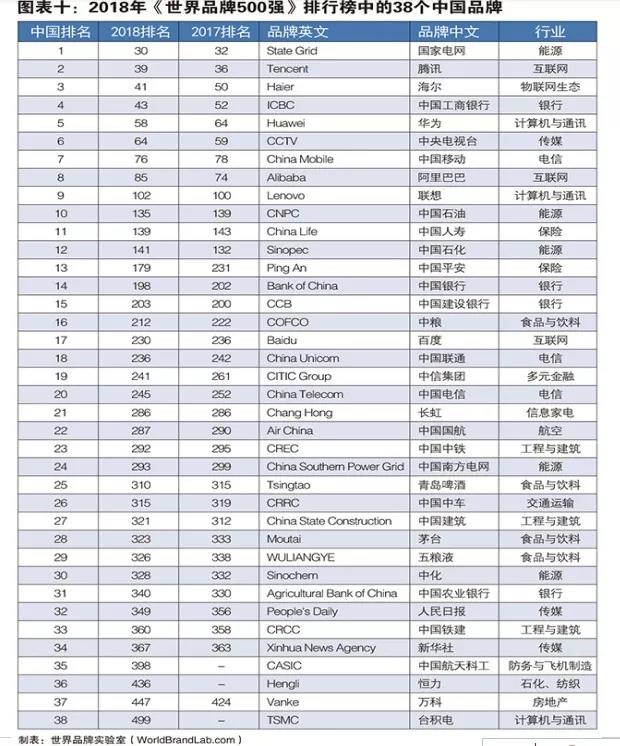 ÔÚ×îгö¯µÄ¡°ÊÀ½çÆ·ÅÆ500Ç¿¡±ÖУ¬ÑÇÂíÑ·¡¢¹È¸è¡¢Æ»¹ûÅÅÃûǰÈý£¬ÖйúÓÐ38¸öÆ·ÅÆÈëÑ¡¡£